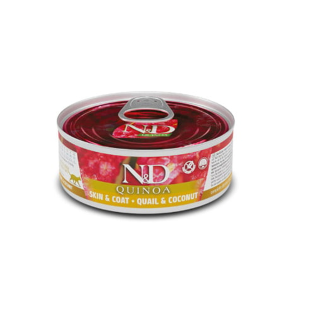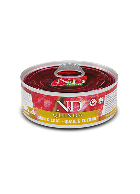Вологий корм Farmina N&D Quinoa Skin&Coat Adult для кішок, дієтичне харчування при харчовій алергії з перепелом, кіноа та ку