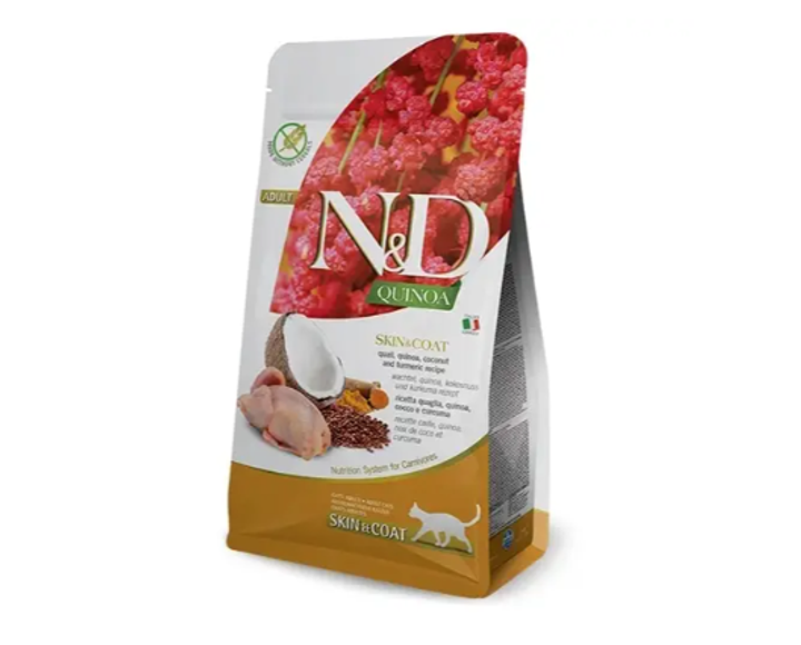 Farmina N&D Quinoa Skin&Coat Adult сухий беззерновий корм для котів при харчовій алергії з перепілкою та кіноа 1