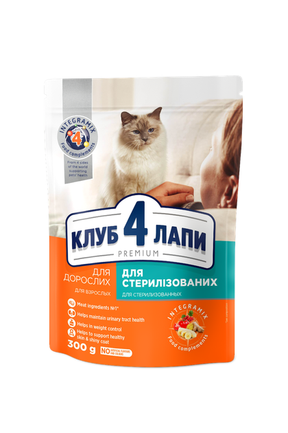 Сухий корм для стерилізованих кішок і кастрованих котів 300 г CLUB 4 PAWS Клуб 4 Лапи