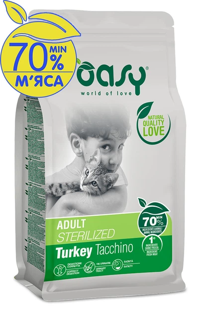 Сухий корм для стерилізованих кішок OASY LIFESTAGE Sterilized індичка 1,5 кг, 510063