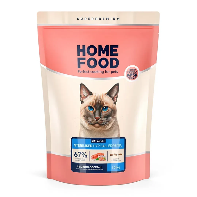 Гіпоалергенний сухий корм HOME FOOD для стерилізованих/кастрованих дорослих котів “Морський коктейль” Hypoallergenic For Ste