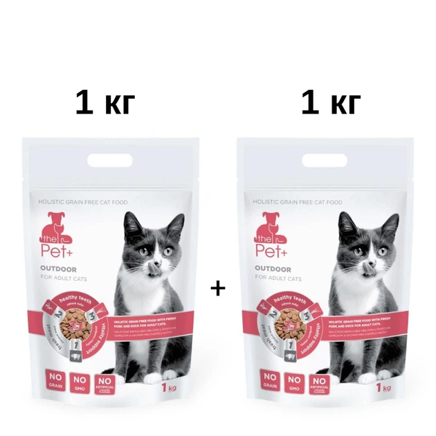 Сухий корм для дорослих котів thePet+ холістік беззерновий свинина та качка Набір 2 кг