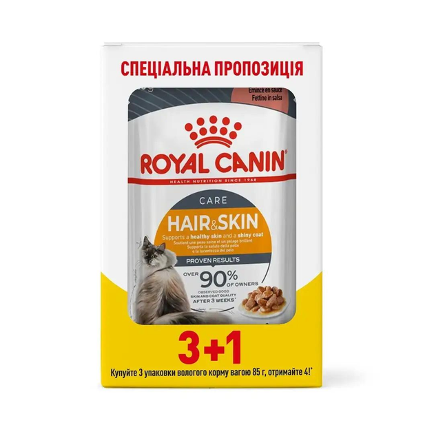 Royal Canin Hair & Skin Care in Jelly pouch вологий корм для котів 3 шт + 1