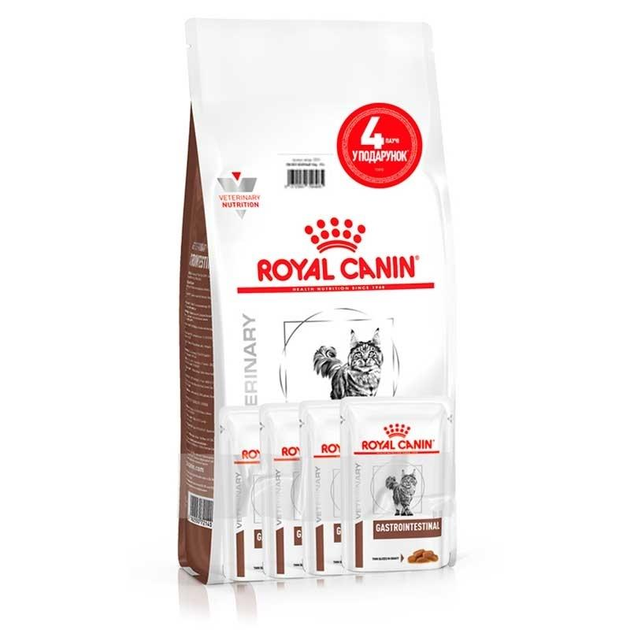 Сухий корм Royal Canin Gastrointestinal для котів при розладах травлення 2 кг + 4 pouch вологого корму