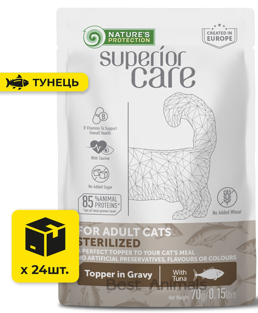 Вологий корм для стерилізованих котів Nature's Protection Натюр Протекшн з тунцем пауч 70 г 24 шт