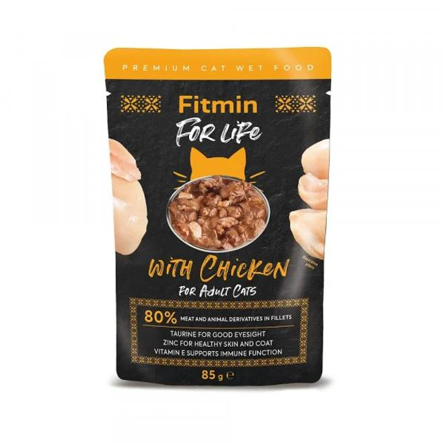 Вологий корм Fitmin For Life Cat Pouch Adult Chicken для котів з куркою 85 г