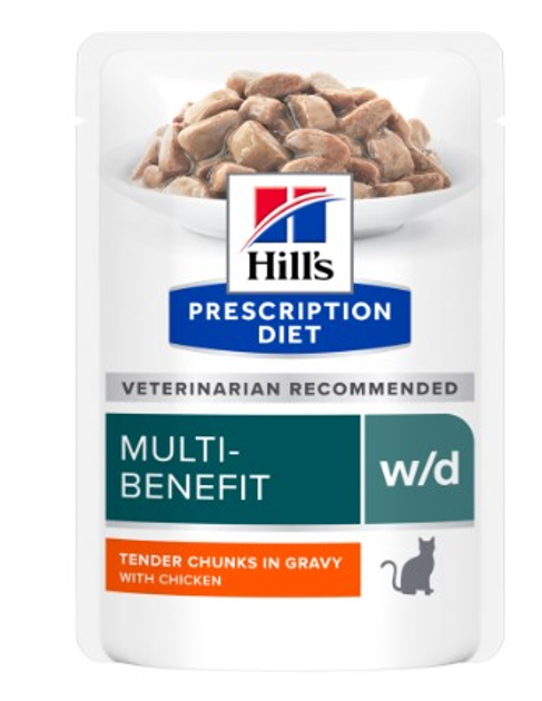 Вологий корм Hill's Prescription Diet w/d для котів при цукровому діабеті та для контролю ваги, з куркою, 12х85 г