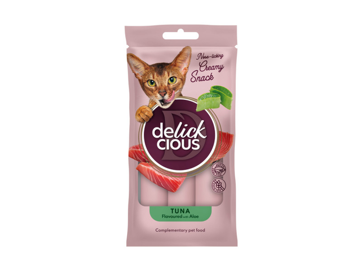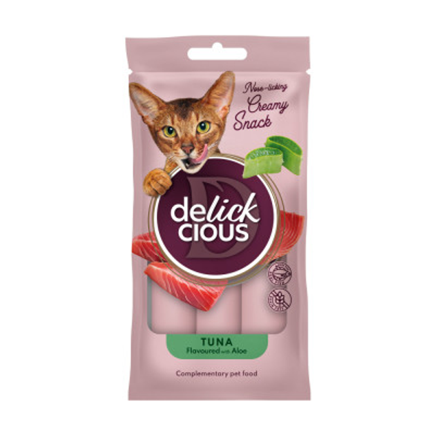 Ласощі для котів Delickcious Тунець з додаванням алое 4 х 15 г (4820269141605)