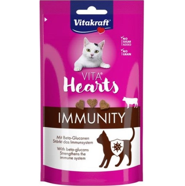 Ласощі для котів Vitakraft Vita Hearts Immunity, beef CAT (м'які сердечка з яловичиною та бета-глюканами) - 40 г