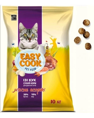 Сухий корм Easy Cook для дорослих котів М'ясне асорті 10кг