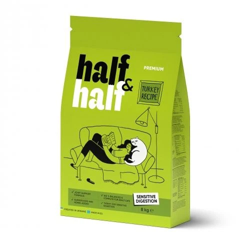 Корм сухий HalfHalf для котів із чутливим травленям з індичкою 8 кг