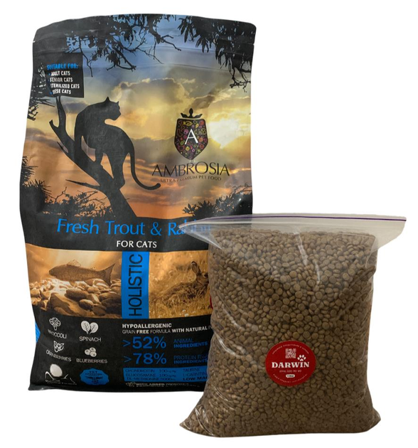 Беззерновий корм Ambrosia Grain free зі свіжою фореллю та кроликом для літніх та стерилізованих кішок 2кг (власне фасування)