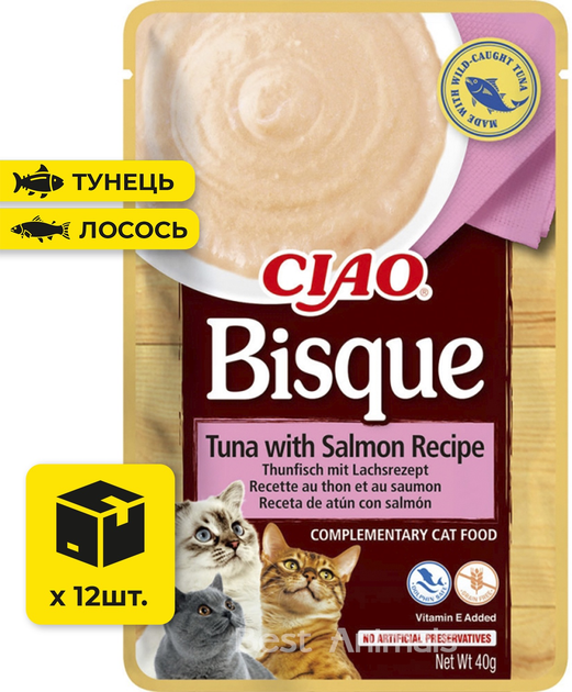 Вологий корм для котів INABA CIAO Bisque соус пюре з тунцем та лососем пауч 40 г 12 шт (4262365738523)