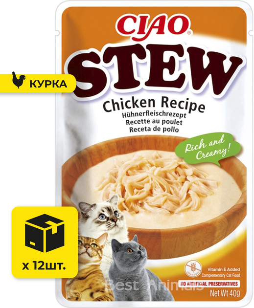 Вологий корм для котів INABA CIAO Stew соус пюре з шматочками курки пауч 40 г 12 шт (4262365738424)