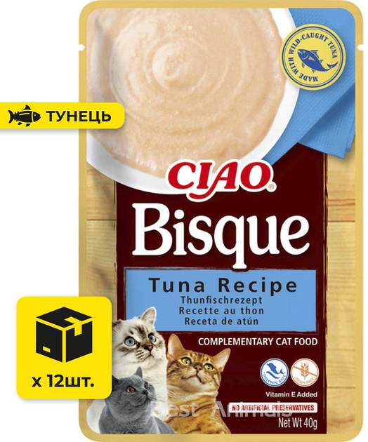 Вологий корм для котів INABA CIAO Bisque соус пюре з тунцем пауч 40 г 12 шт (4262365738516)