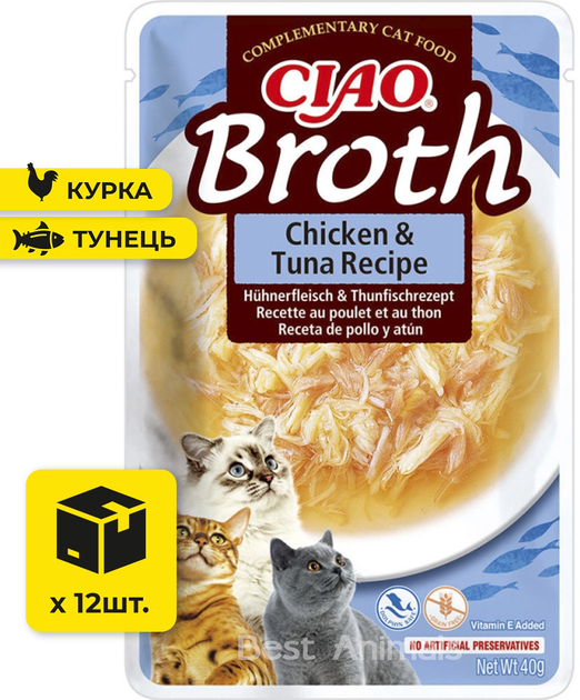 Вологий корм для котів INABA CIAO Broth з куркою та тунцем в бульйоні пауч 40 г 12 шт (4262365738264)