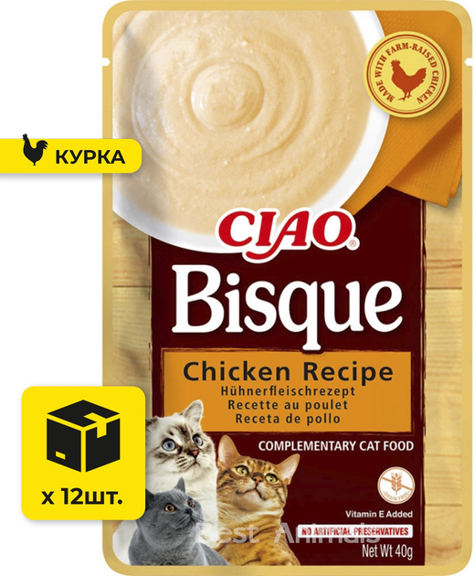 Вологий корм для котів INABA CIAO Bisque соус пюре з куркою пауч 40 г 12 шт (4262365738530)