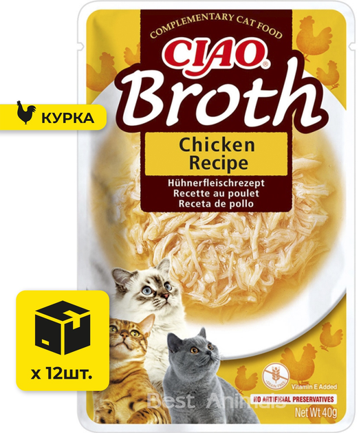 Вологий корм для котів INABA CIAO Broth з куркою в бульйоні пауч 40 г 12 шт (4262365738257)