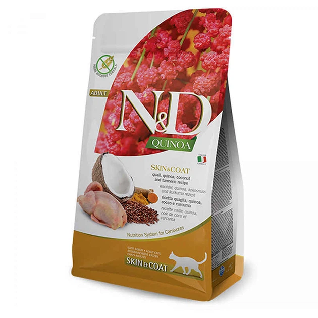 Сухий корм Farmina N&D Quinoa Skin&Coat Adult для котів, при харчовій алергії, з перепелом та кіноа, 1,5кг