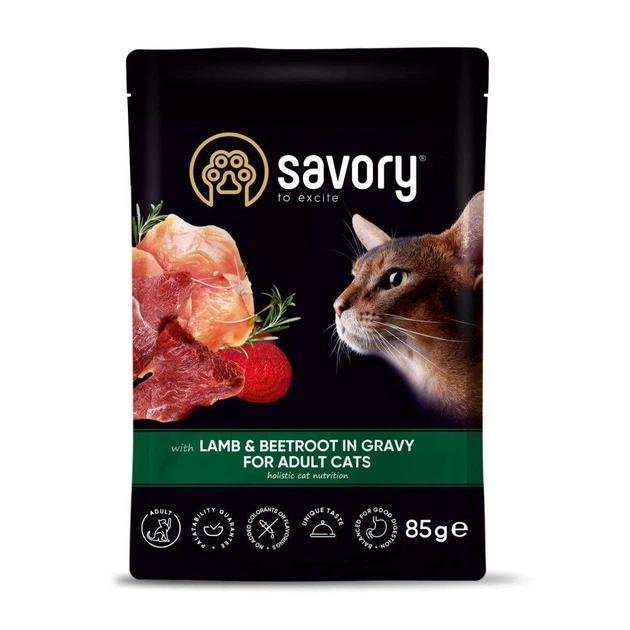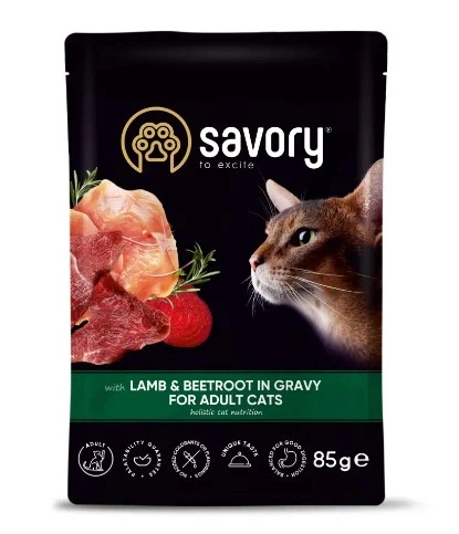 Вологий корм для дорослих котів ягня з буряком у соусі пауч Savory 85 г 22 шт.