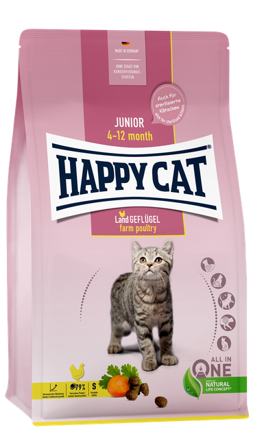 Сухий корм для кошенят з 4 до 12 місяців з чутливим травленням Happy Cat Geflugel з птицею 10 кг