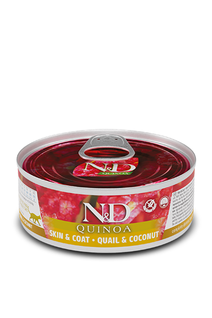 Farmina cat вологий корм N&D Quinoa Skin&Coat ADULT дієт. харчування, при харчовій алергії з перепелом, кіноа, кокос, куркум