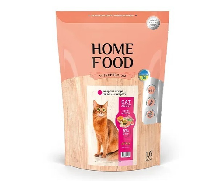 Сухий корм для дорослих кішок Home Food CAT ADULT Здорова шкіра та блиск шерсті з індичкою та лососем 1.6 кг