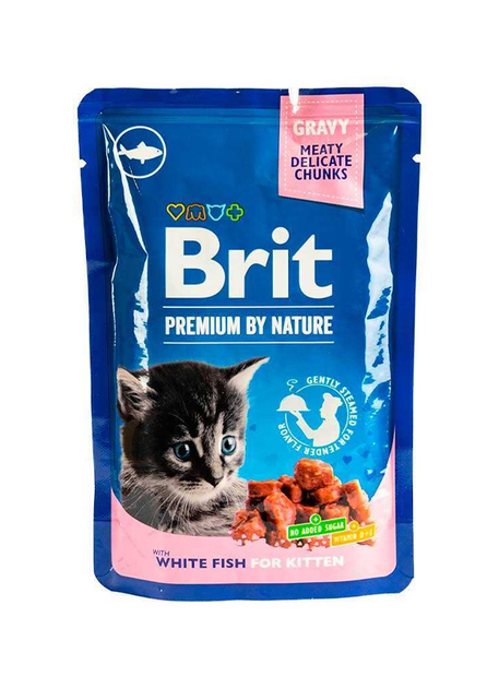 Вологий корм Brit Premium Kitten для кошенят з білою рибою (шматочки у соусі) 100 г х 24 шт