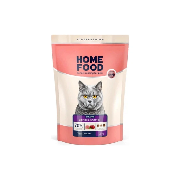 Сухий корм HOME FOOD For British and Scottish breeds для дорослих котів британських та шотландських порід з індичкою та качк