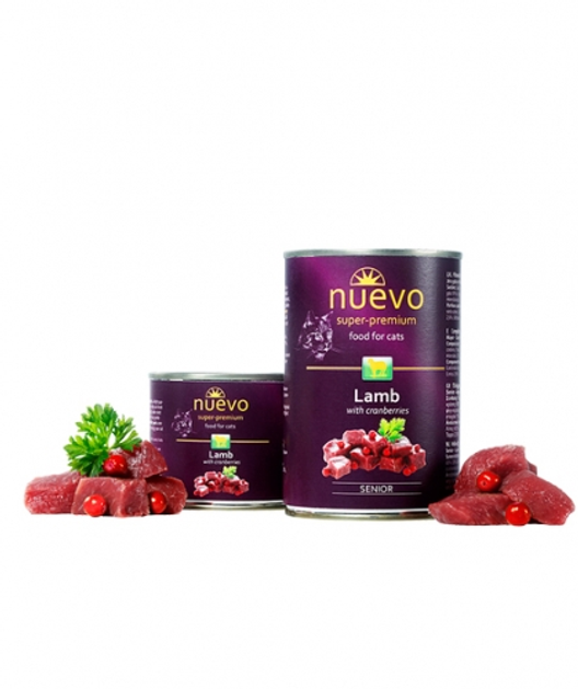 Nuevo Adult консерви з ягнятком та журавлиною для літніх котів, 400 г