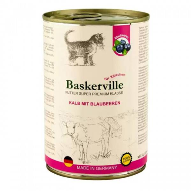 Вологий корм для кошенят Baskerville KF Super Premium Kalb Mit Blaubeeren Телятина з чорницею 400 г