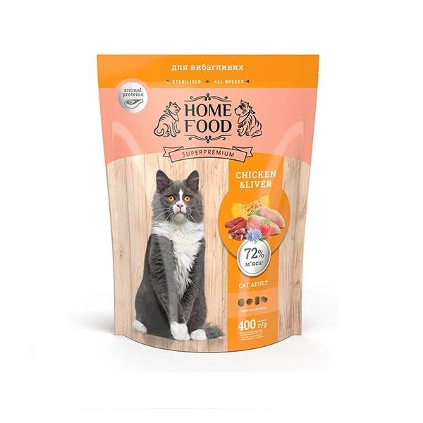 HOME FOOD Сухий корм для дорослих котів «Chicken & Liver» CAT ADULT Для вибагливих 400 г