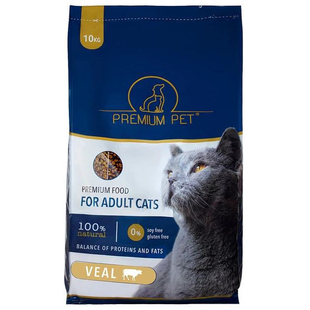 Повноцінний сухий корм для котів Premium Pet з телятиною, 10 кг
