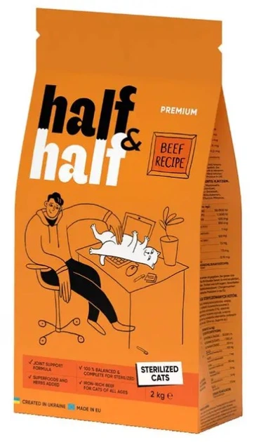 Сухий корм для котів Half & Half Sterilized 2 кг - яловичина