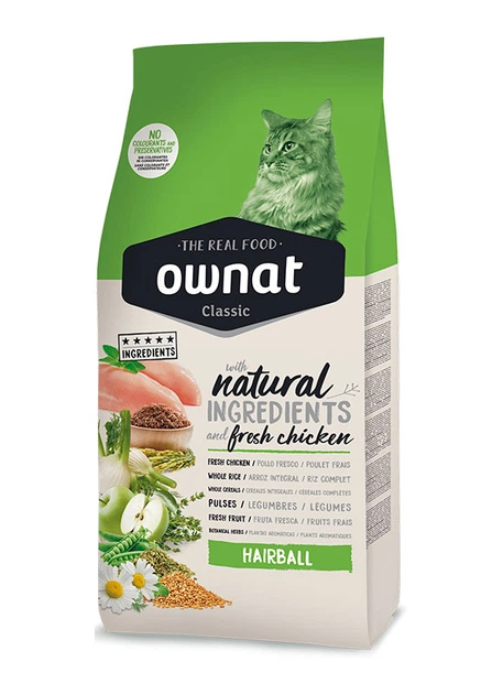 Сухий корм Ownat Classic Hairball для виведення шерсті у дорослих котів, з куркою 1.5 (кг)
