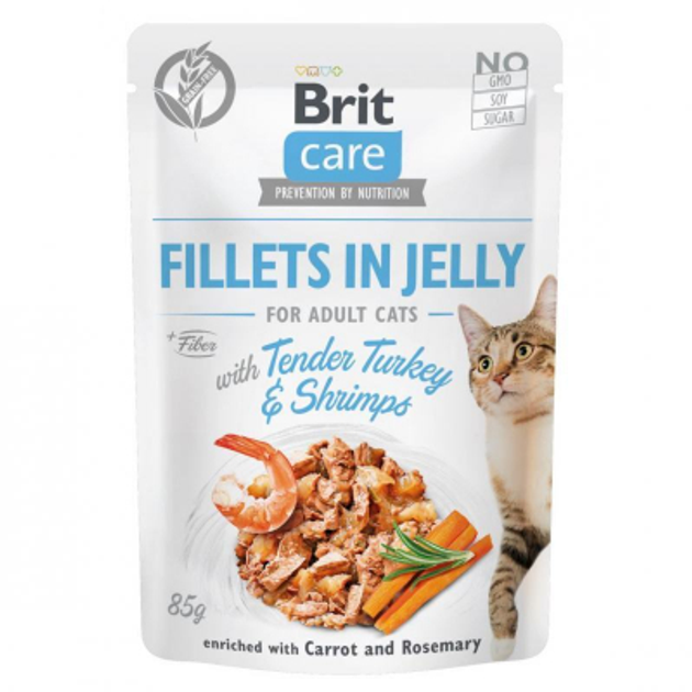 Вологий корм для котів Brit Care Cat pouch 85 г, з індичкою з креветками в желе