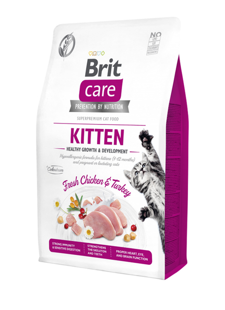 Сухий гіпоалергенний корм Brit Care Cat Kitten Growth & Development для кошенят з куркою та індичкою 2 кг