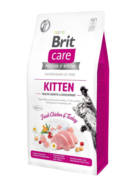 Сухий гіпоалергенний корм Brit Care Cat Kitten Growth & Development для кошенят з куркою та індичкою 7 кг