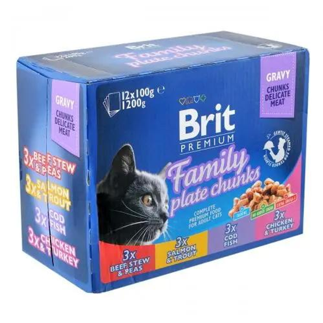 Упаковка вологого корму для котів та кішок Brit Premium Сімейна тарілка асорті (12 шт по 100 г)