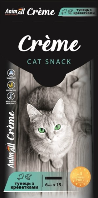 Ласощі для котів AnimAll Сrme зі смаком тунця з креветками, 6х15 г