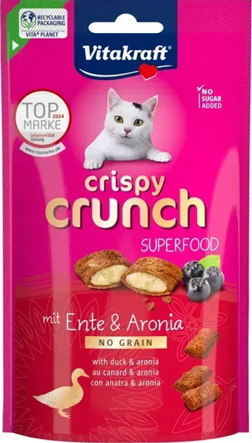 Ласощі для котів Vitakraft Crispy Crunch, duck + aronia KA (з кремовою начинкою з качкою та ягодами аронії) павуч - 60 г