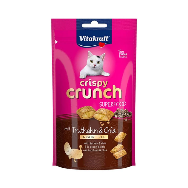 Ласощі для котів Vitakraft Crispy Crunch Turkey+ Chia seeds Cat (з кремовою начинкою з індичкою та насінням чіа) павуч - 60
