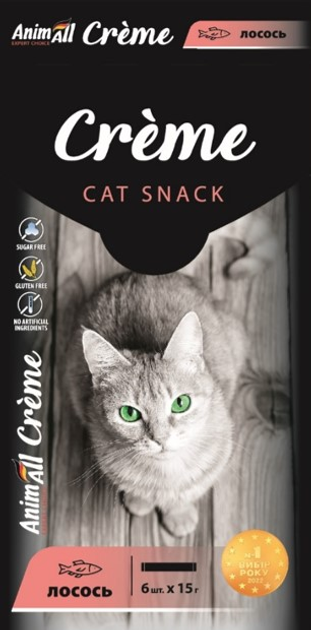 Ласощі для котів AnimAll Сrme зі смаком лосося, 6х15 г