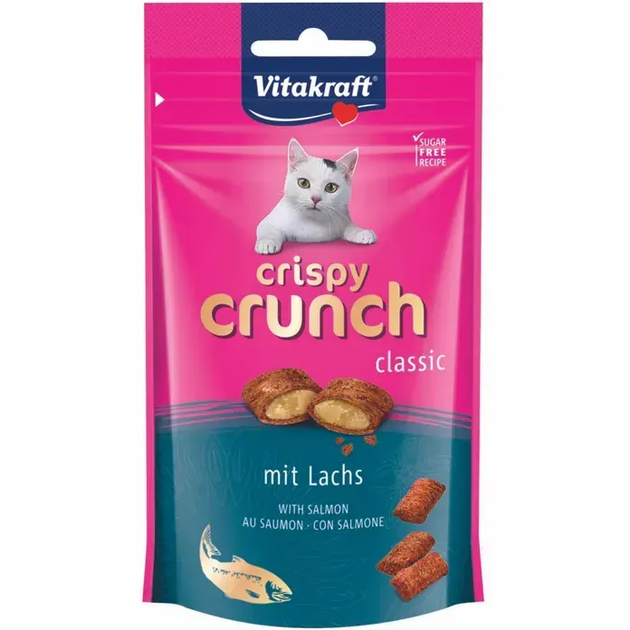 Ласощі для котів Vitakraft Crispy Crunch Salmon Cat (з кремовою начинкою з лососем) павуч - 60 г