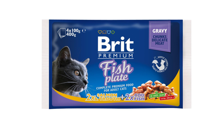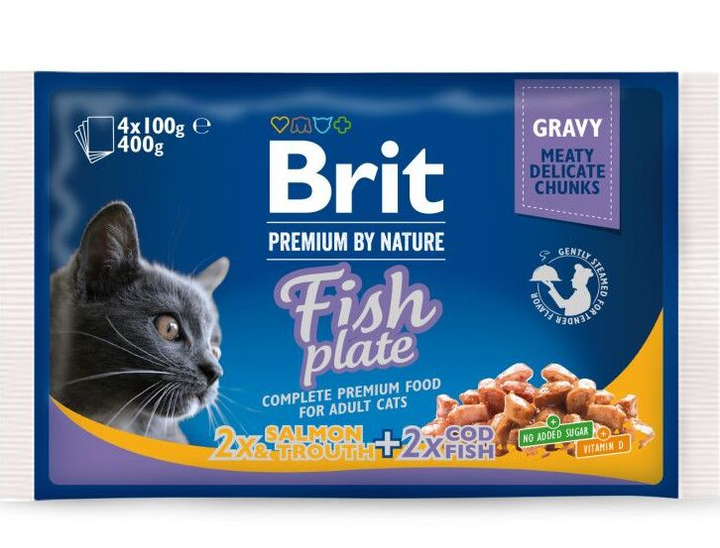 Вологий корм для котів Brit Premium Cat Fish Plate pouches рибна тарілка набір паучів 4 шт. по 100 г