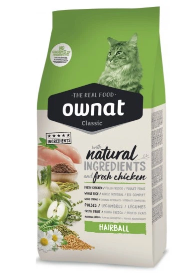Сухий корм Ownat Classic Hairball для виведення шерсті у дорослих котів, з куркою 1.5 (кг)
