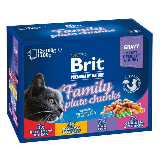 Вологий корм для котів Brit Premium Cat Family Plate pouches сімейна тарілка набір паучів 12 шт. по 100 г