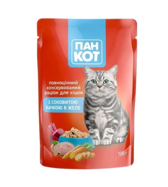 Вологий корм для котів Пан Кіт паучі (З соковитою качкою в желе) 12х100г