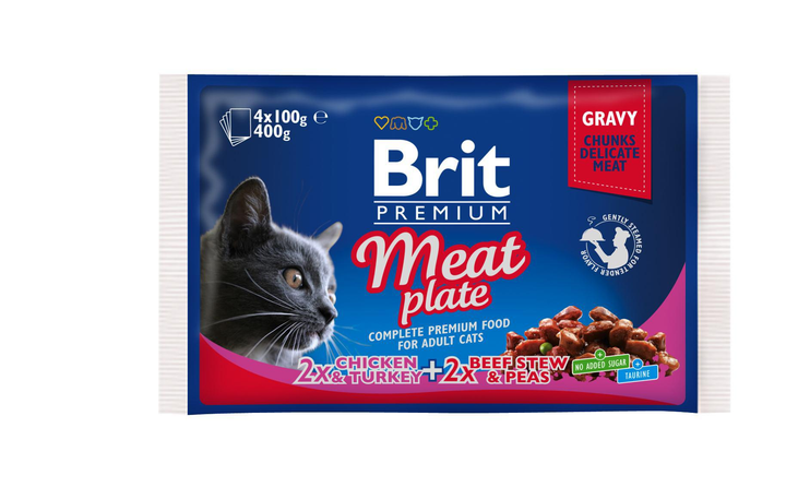 Brit Premium Cat Meat Plate pouches 0.4 кг вологий корм для кішок (асорті з 2 смаків «М'ясна тарілка»)