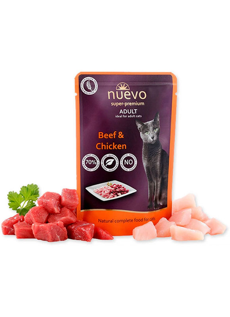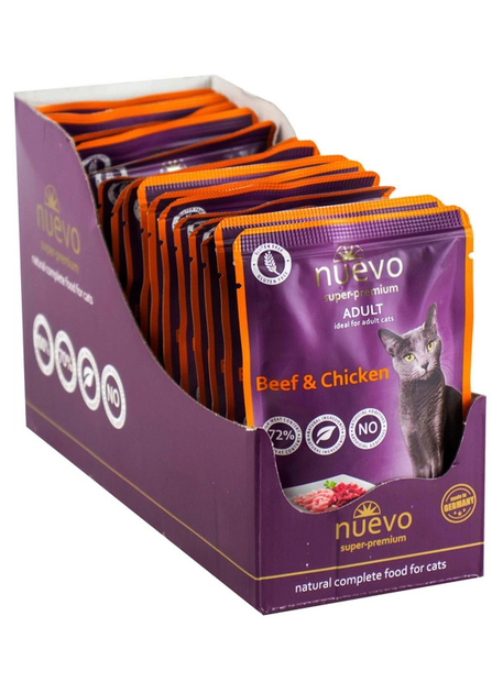 Вологий корм Nuevo Adult Beef and Chicken пауч з яловичиною та куркою для котів, 85 г х 16 шт